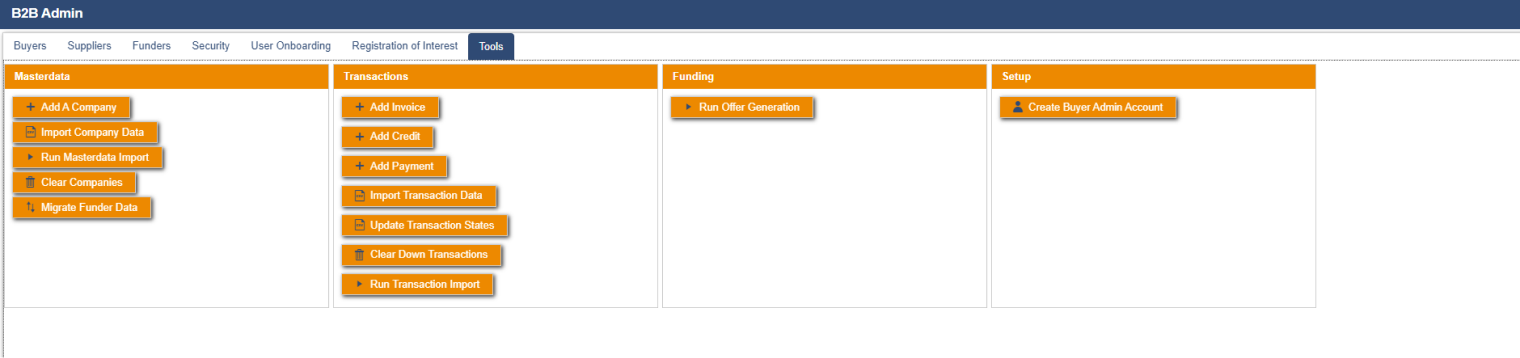 When you access the tools tab on the B2B Admin page, you’re greeted with something that looks like this:
