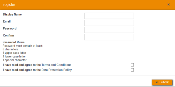 This is a simple register dialog that you should use to set up the generic buyer admin account. This account will be used to run all Transaction and Masterdata imports in the system and it will also be responsible for running the offer generation flow, getting offers into the system.