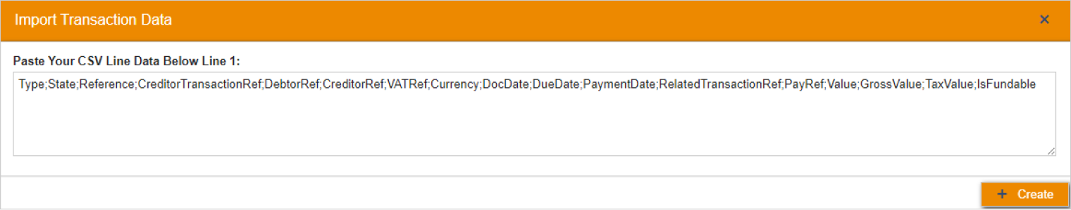 To import transactions using this UI, you must follow our CSV File Format for Transactions imports. Instead of following your usual process of uploading a file to DMS, this is a quick and easy way to import single transaction or a few transactions at one time. You just simply copy the data for your transaction in below the pre-defined header line.