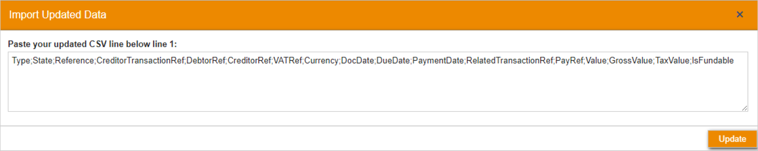Instead of following your usual process of uploading a file to DMS, this is a quick and easy way to update a single transaction’s state or even a couple of transaction’s states. Once you’ve copied in your appropriate CSV line with the appropriate changed state, clicking the update button will then update this transaction in our system and any changes will be made within the UI.