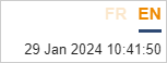 As you can see here, we currently only allow there to be French and English Cultures within our system. If, for example you de-select French from this list, you will no longer be able to select it from the top right hand corner. The following is a screenshot of the top right hand corner, where the user can select the language that they want to view the page in.