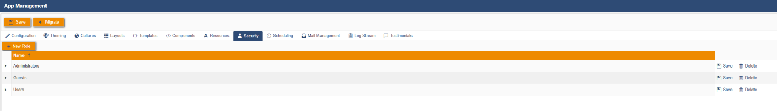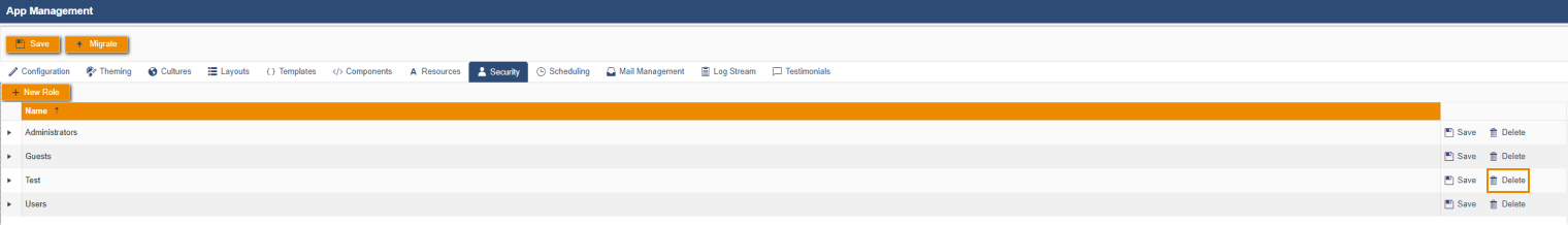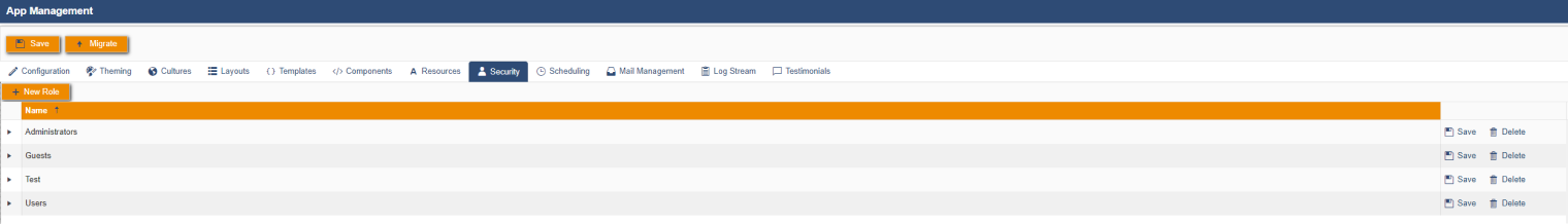 You this functionality through the App Management Tabs. From the Security tab you can manage multiple things, including what roles exist in the system & what particular tasks they can carry out within the portal.