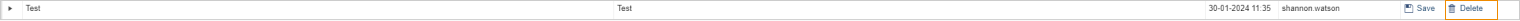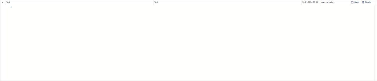 For now, I have created a Test template. On this row you can see that there are save and delete functions and there’s the ability expand the component.